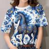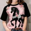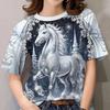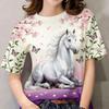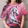 Pferde-Muster T-Shirts Floral 3D-Druck Damen Freizeit O-Ausschnitt Kurzarm T-Shirt Harajuku Lässige T-Shirts Y2k Tops Damenbekleidung