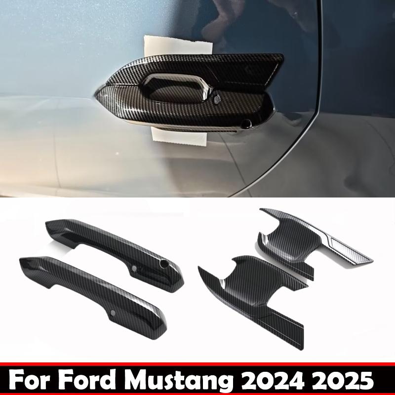 For Ford Mustang 2024 2025 ABS carbonfiber black Exterior Side Door Handle door Bowl sticker Cover Trim External accessories