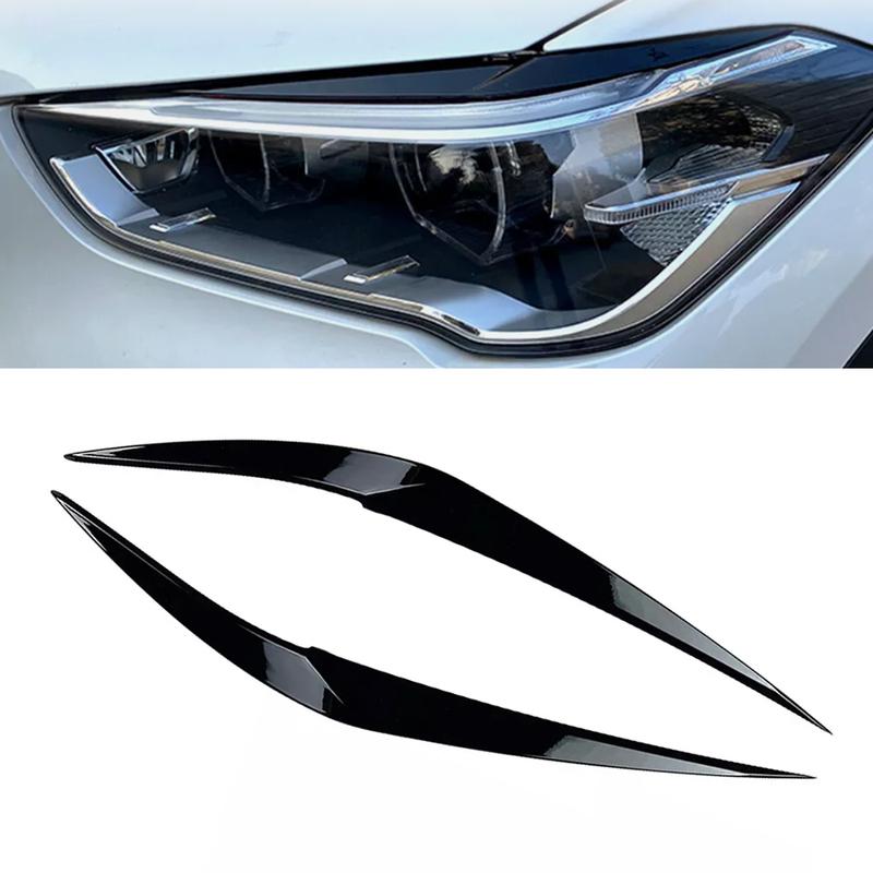 2Pcs Car Front Headlight Eyebrow Eyelid Cover ABS Glossy Black Stickers for BMW X1 F48 2016 2017 2018