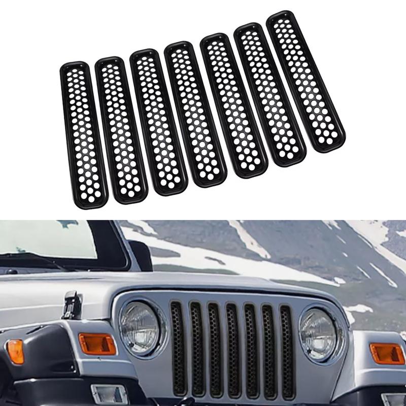7Pcs Front Grill Mesh Grille erts Cover Trim Kit for Jeep Wrangler TJ 1997 1998 1999 2000 2001 2002 2003 2004 2005 2006