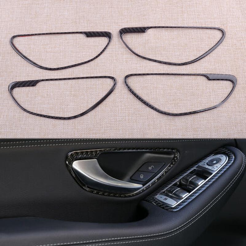 4pcs Carbon Fiber Interior Door Handle Cover Trim Sticker Fit for Mercedes Benz W205 X253 C GLC Class 2015 2016-