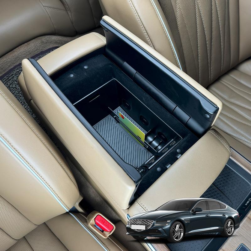 1PC Car Interior Trim Central Storage Box Console Armrest Organizer Holder black ABS For Genesis G80 RG3 PE 2025 Left-hand Drive