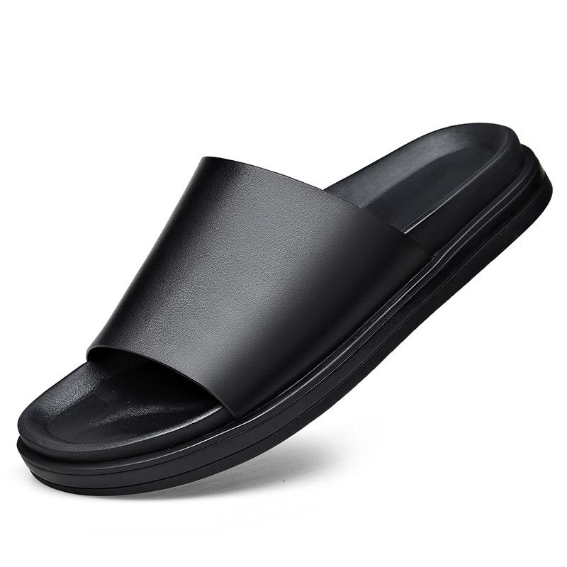 Neue Echtleder Hausschuhe Herren Dicke Sohlen Rutschfeste Flip-Flop Sandalen für Herren Mode Lässig Schwarze Sommerschuhe Herren