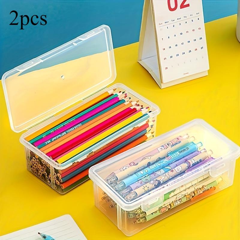 2pcs Large Transparent Storage Box with Hinged Lid - Perfect for Pens, Pencils, Markers & Crafts School and Office Organization