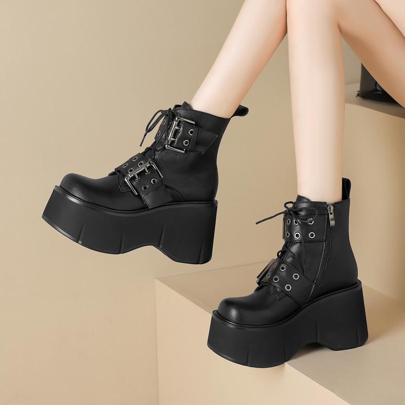 New Gothic Style Sexy Elegant Chunky wedge Women Ankle Boots Walking Comfy Woman Shoes Platform Boots