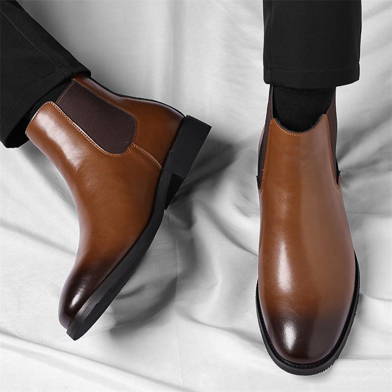 Luxury New Designer Pointed Patent Leather Casual Chelsea Ankle Boot for Men Brand Winter Fashion High Tops Shoes Zapatos Hombre
