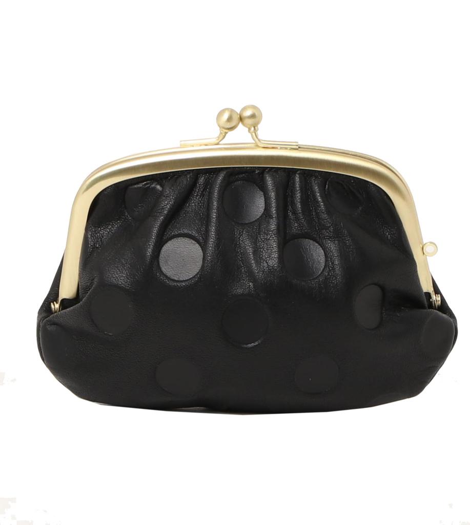 ZUCCHERO Genuine Leather Coin Purse with Made in Polka Dot 55213 Women's Clasp, Japan, Pattern, Black,