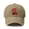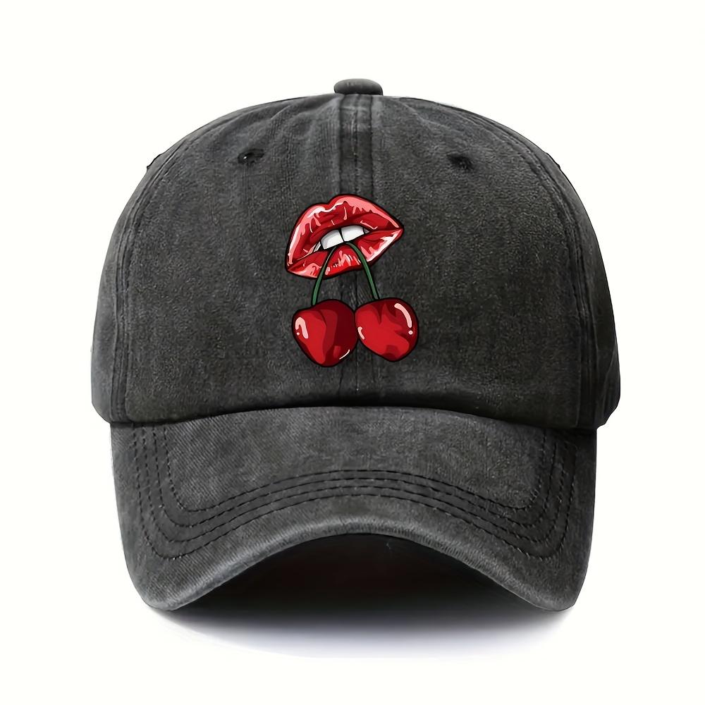 Sexy Lippen Kirschmuster Gewaschene Baseballkappe Trendige Unisex Freizeit Polyester Verstellbare Sportkappe