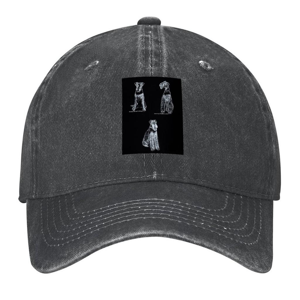 Quirinus Versatile Airedale Terriers White Ink on Black Paper 1 Baseball Cap New In Hat Unique hats Cosplay Womens Hats Mens