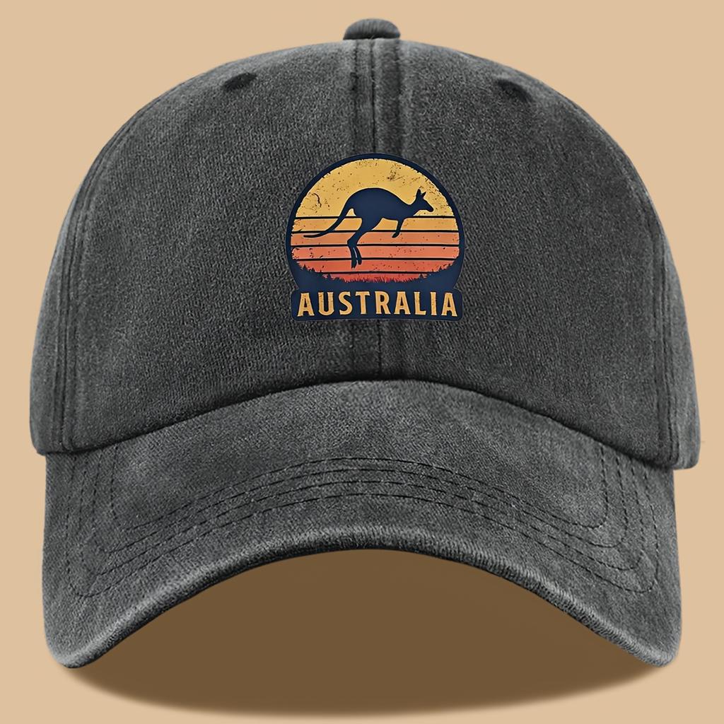 Geometrische Baseballkappe 1 Stück Verstellbar Unisex Schwarze Baseballkappe mit Känguru Australische Sonnenuntergang Geometrischer Aufdruck