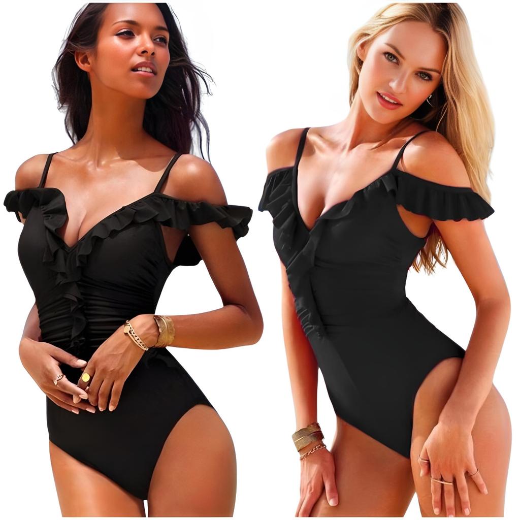 Slimming one-piece swimsuit black ruffle size M Slimming one-piece swimsuit black ruffle size L