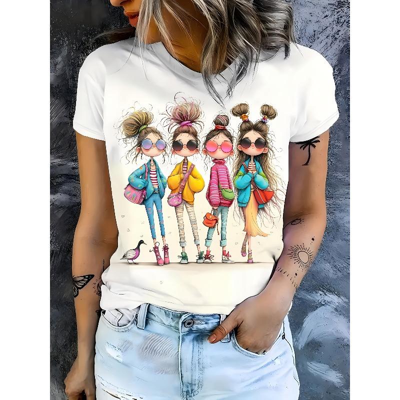 Damen Vier Muster Druck T-Shirt Rundhalsausschnitt Kurze Ärmel Ganzjahres Stilvoll Lässig Trendig Alltags Komfort Oberteil