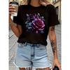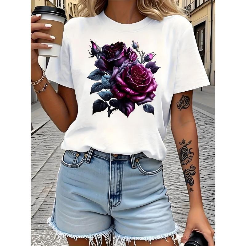 Europäische Größe Florales Kreatives Design Muster Gedruckt Damen Mode T-Shirt, Weich und Bequem Reines Kurzes Ärmel, Einfach, Modisch