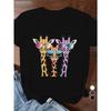 Europäische Größe Zeichentrickgiraffen mit Sonnenbrille Damen Übergröße Sport T-Shirt mit kurzen Ärmeln