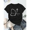 Europäische Größe Damen Schmetterlingsprint Lässiges T-Shirt - Weiches Rundhals Kurzarm-Oberteil, Maschinenwaschbar Frühling/Sommer Tägliches Essential