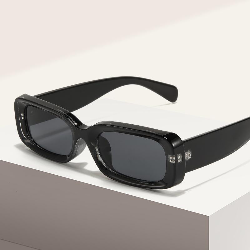 Retro square small frame black sunglasses UV protection lightweight stylish outdoor daily all-match unisex glasses