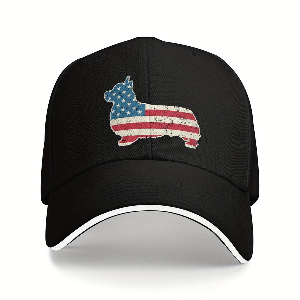 Patriotic Corgi American Flag Baseball Cap Adjustable Polyester Casual Snapback for Adults
