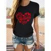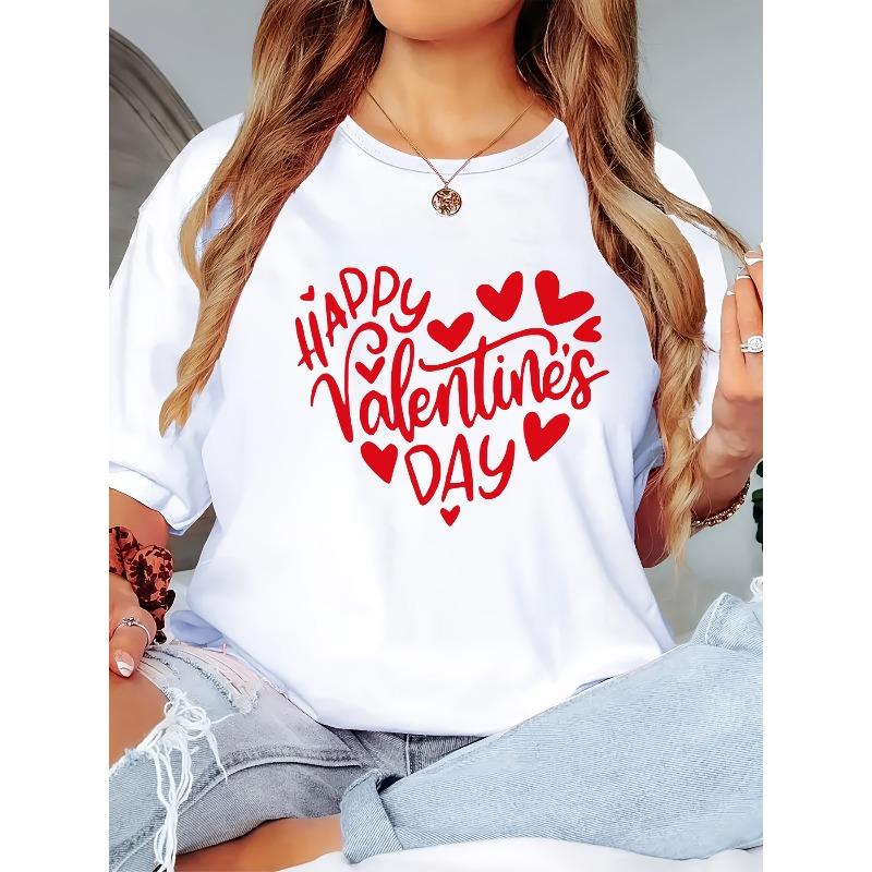 European Size Women's Valentine's Day Heart Print T-Shirt - Happy Valentine's Lettering Short Sleeve Round Neck Casual Blouse