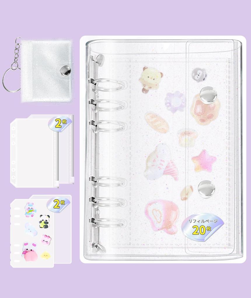 A6 Sticker Book Refill Cute Mini Notebook with Highly Waterproof Zippered Plastic Transparent Mini Sticker Book Binder with Clear Card Perfect for and
