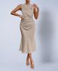 Europäisches & Amerikanisches Damen Herbst-Faux-Seiden-Satin-Falten-Midikleid