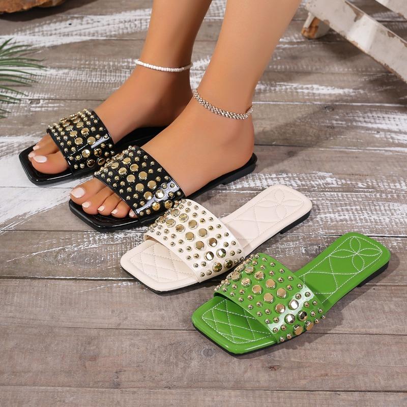 New Flat Slippers with Metal Nails for Everyday Wear Square Toe Women's Shoes