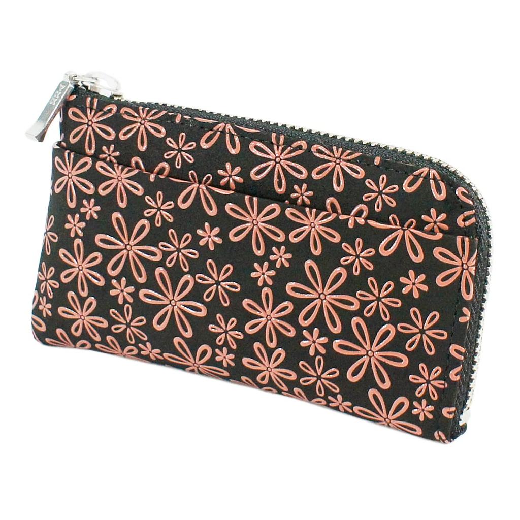 Indenya Inden Coin Purse, F Coin Purse 05, Deerskin, Black with Pink Lacquer, Snowdrop Pattern, 1005-51-160