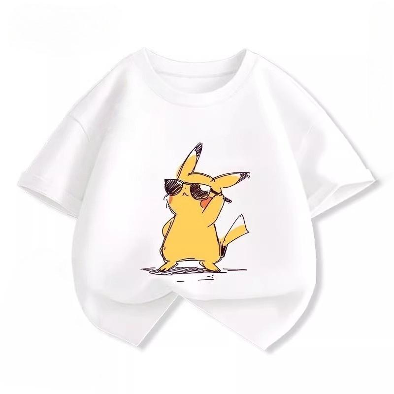 Potdemiel Summer New Pikachu Print Children's Pure Cotton T-Shirt, Boys and Girls, Comfortable and Breathable Children's T-Shirt