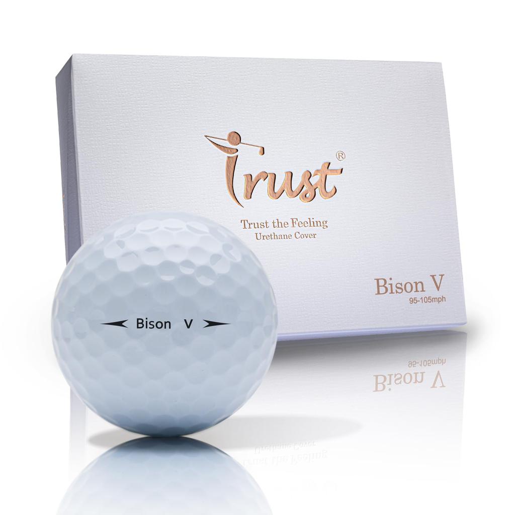 Trust 2023 Bison V Golf Long and Urethane Reactive Core 1 Dozen White Balls, Distance, Straightness, Stoppage, Cover, 3-Piece (Tour Style), (12
