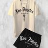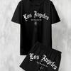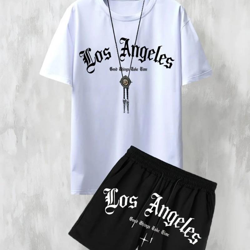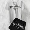 Neues Lässiges Herren-T-Shirt-Shorts-Set mit Los Angeles Buchstabenaufdruck, Bequem, für Draußen, Zweiteiliges Set