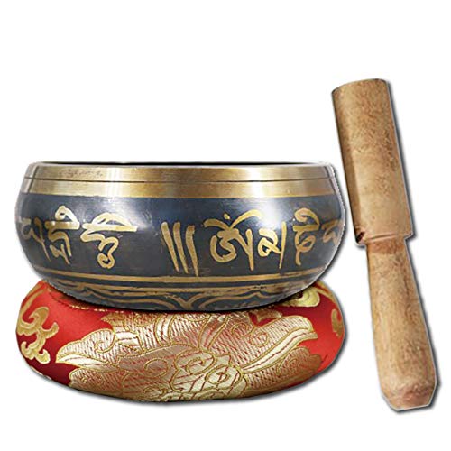 Felimoa Klangschale mit Obertönen, Klöppeln und rundem Kissen, Sechs-Zeichen-Mantra, für Konzentration, Meditation, Yoga und Heilung (rot)