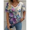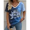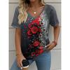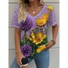 Blumen Damen V-Ausschnitt T-Shirt Sommer Outdoor Lässig Kurzarm Tops Mode 3D-Druck Trendig Übergröße Damenbekleidung