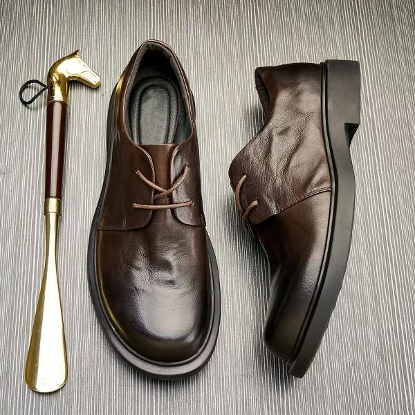 Herren Freizeit Schuhe 2026 Frühling und Herbst atmungsaktiv Business niedrig geschnitten runde Spitze Jugend Schnürung lässig Lederschuhe