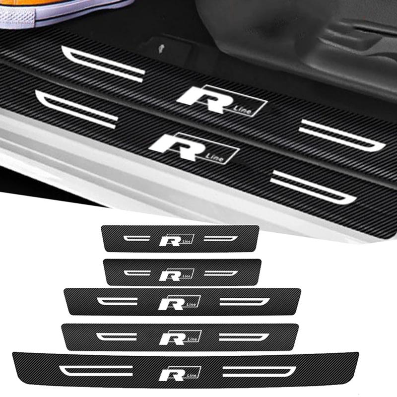 2026 Heiß Für VOLKSWAGEN VW Für Volkswagen VW Rline R line Logo Kohlefaser Auto Türschwellen Schutz Aufkleber Auto Hinterer Kofferraum