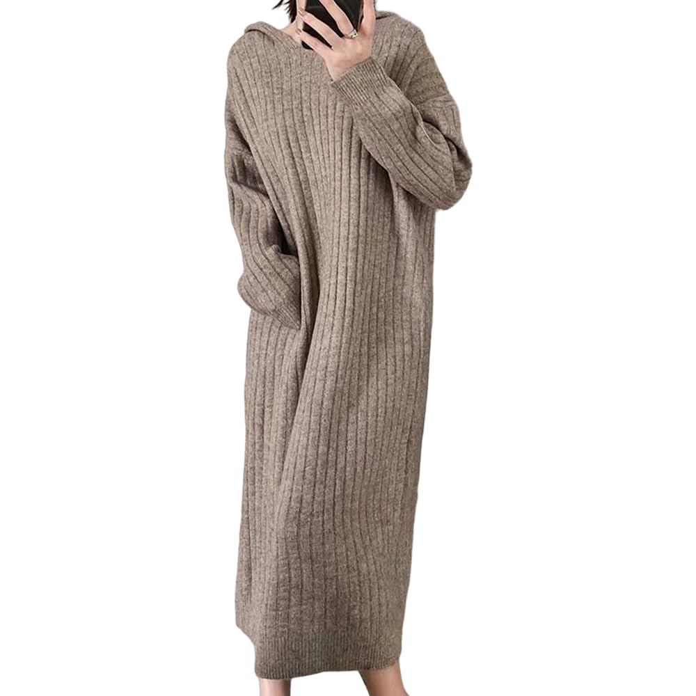 Vmiutyer LLOP Long Hooded Knit Loose Solid Perfect for Autumn and Winter Women's Dress, Fit, Casual, Thick, Color,