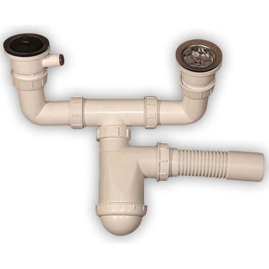 Spülsiphon 2 Kammern - Metallsieb mit Auslauf nach rechts - Hj/S2009