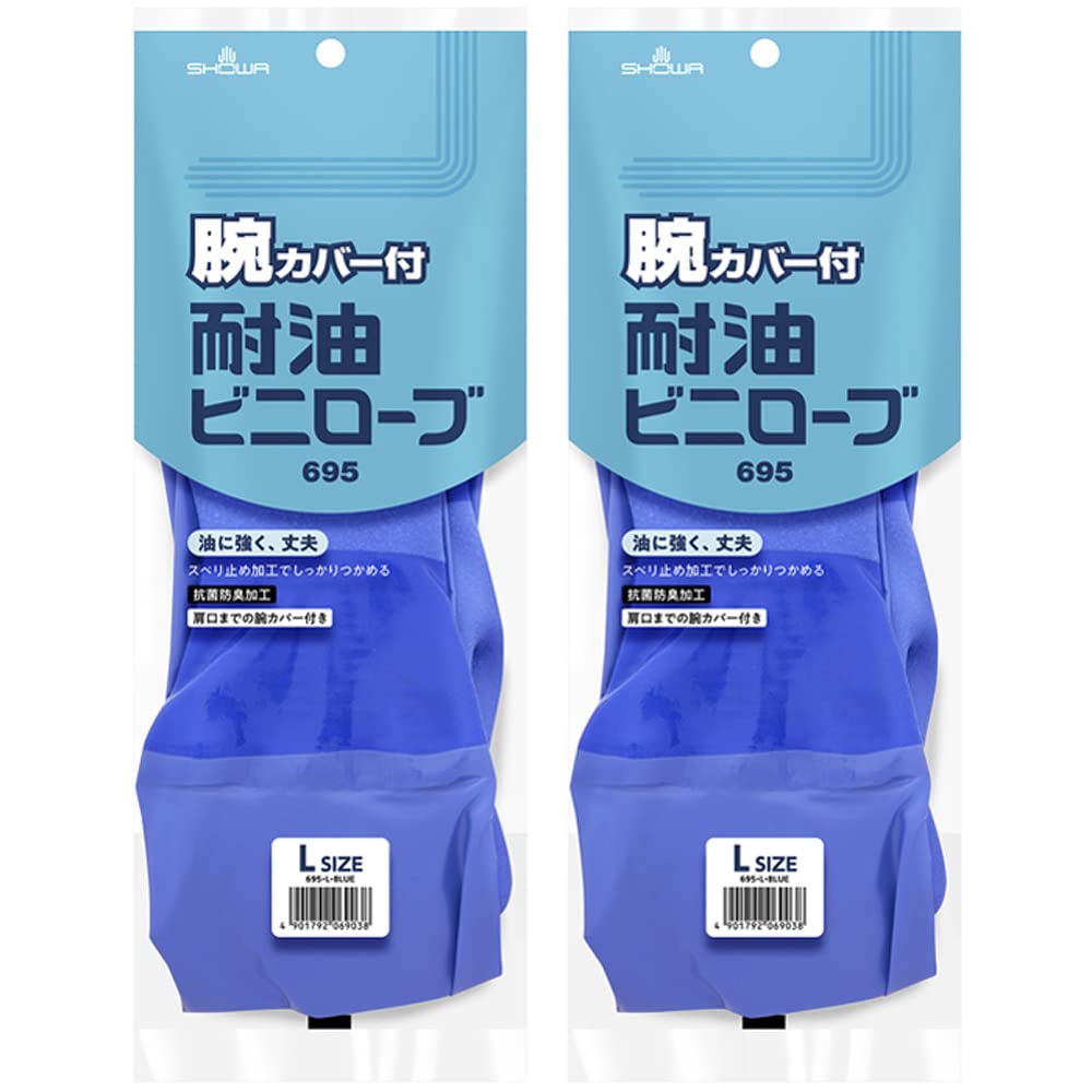 Showaglove Arbeitshandschuhe Ölbeständige Handschuhe Nr. 695 mit Armschutz Ölbeständige Vinylhandschuhe Größe L 1 Paar 2-teiliges Set Blau