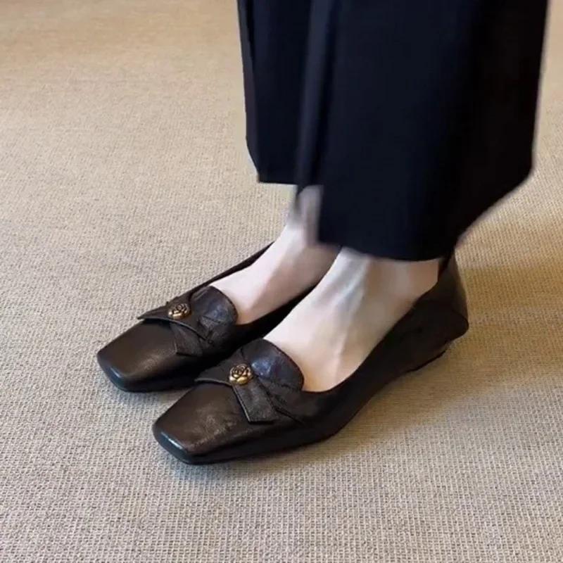 Retro Soft Bottom Mary Jane Shoes for Women with Butterfly Knot Commuter Flat Shoes Versatile Casual Leather Shoes
