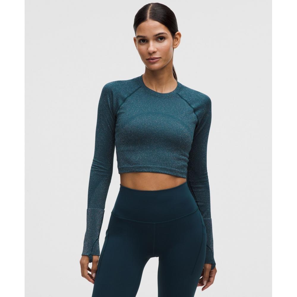 Lululemon Swiftly Tech Cropped Long Sleeve Shirt 2.0 Sparkle Indochine Blue Rainbow Lurex