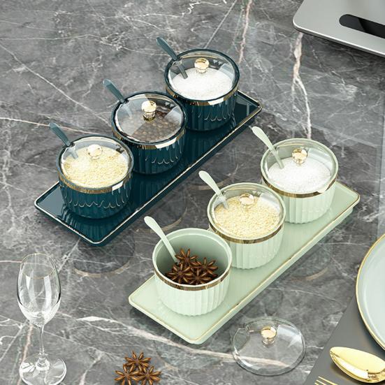 Gewürzgläser Unabhängige Gewürzbehälter Transparente Acrylgläser mit Löffeln Tablett BPA-freier Kunststoff Gewürzbox für Küchenaufbewahrung Salz Zucker