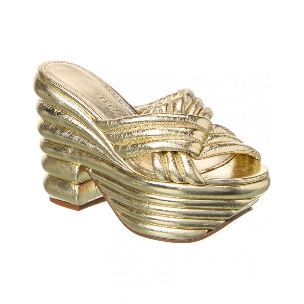 Salvatore Ferragamo Ferragamo Sculptural Leather Platform Sandal Gold