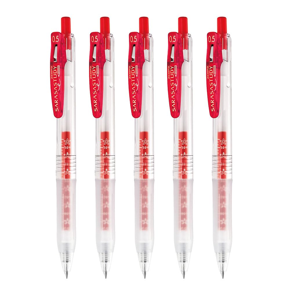 Zebra Sarasa Study Gel-Kugelschreiber Set, 0,5 mm, Rot, 5 Stück, P-JJM88-R5-AZ
