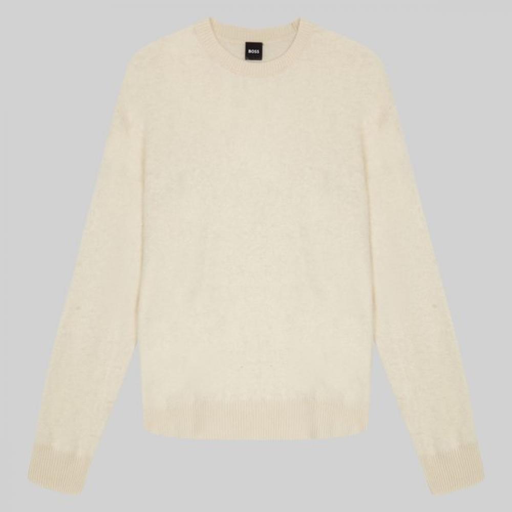 Boss Hairy Cashmere Regular Fit Knit Sweater Open White 50526881131