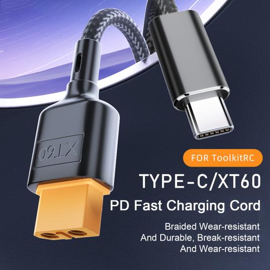 Ladekabel Typ-C auf XT60 Modellanschluss 100W PD Schnellladung Hochgeschwindigkeitsausgang für Modellflugzeuge Autos Langlebig Geflochten