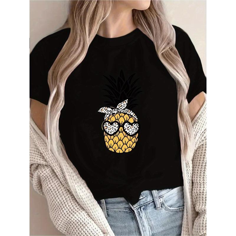 Damen Tropical Ananas Grafik T-Shirt Gelb Lässig Rundhalsausschnitt Kurzarm Maschinenwaschbar Urlaubsbereit Lässiges Ausgeh-Outfit Verspielt
