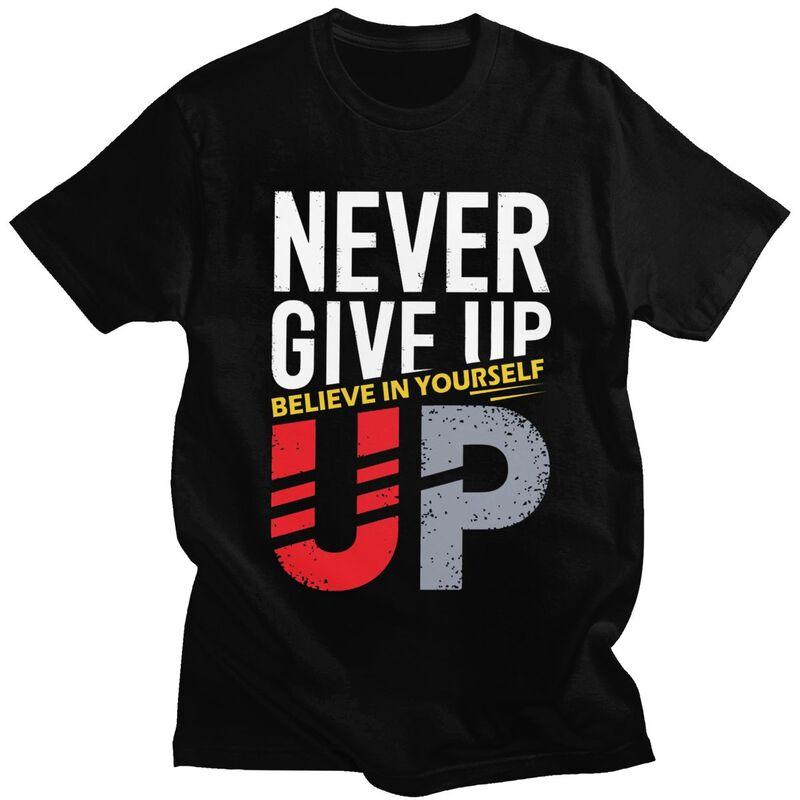 Custom Never Give Up T Shirts Men Short Sleeve Tshirts Casual Tee Slim Fit Tshirts Gift