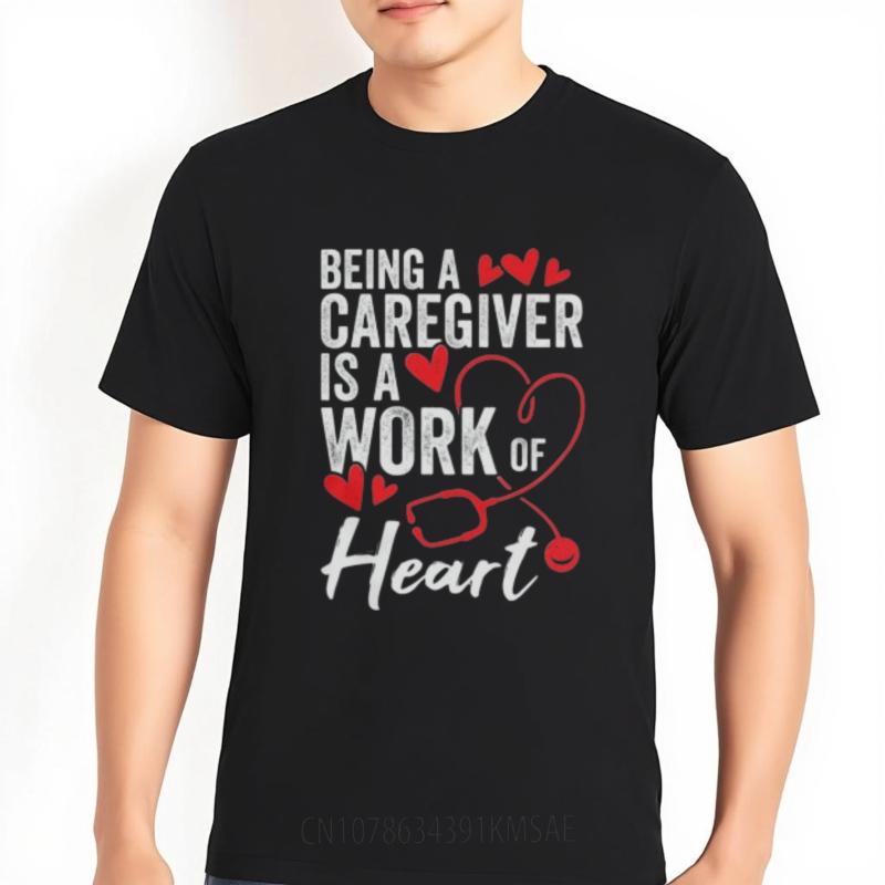 Breathable Tee Boys summer tshirt Cotton Being A Caregiver Is A Work Of Heart Fashionable For him Top tees Classic Tshirt