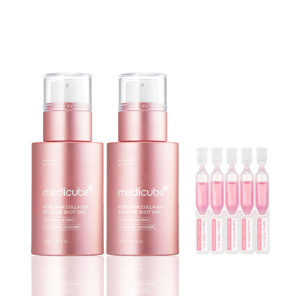 Medicube PDRN Pink Exosome Shot Ampoule 2000 Hydrating Facial Ampoule 30ml x2 (+ 5 PDRN Serum Sachets)