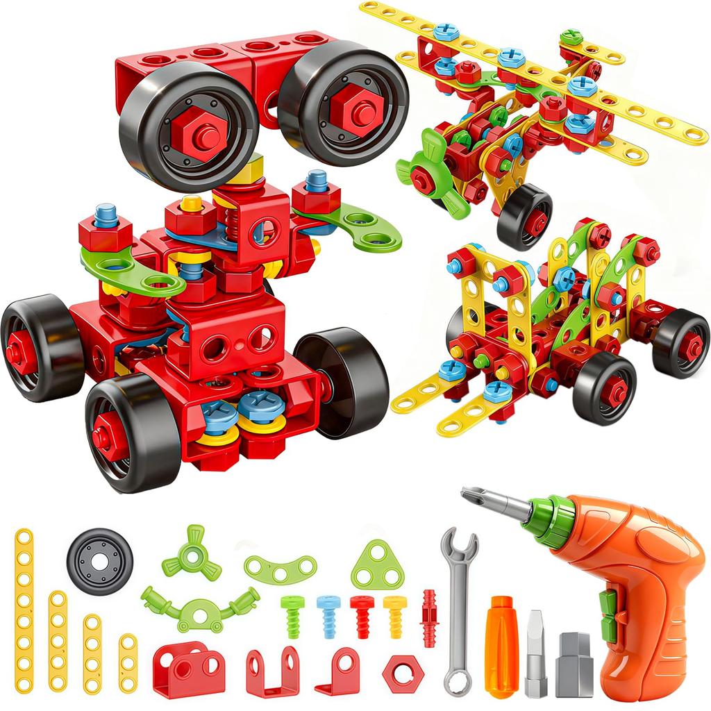 Blocks and Tool 288 Educational Toy with Screws and Electric DIY Pretend 3D Popular for Christmas Gift Play Carpenter's Set, Pieces, Drill, Play, Car,