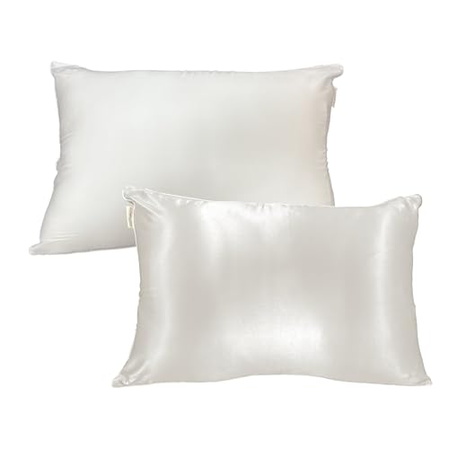 Seiden-Power-Kissenbezug mit Rayon-Rückseite [My Pillow], Seitenreißverschluss, Wendbar, Haarverschönernd, 6A-Qualität, Ganzjahres-Einsatz, Antistatisch (Elfenbein, 45x65cm)