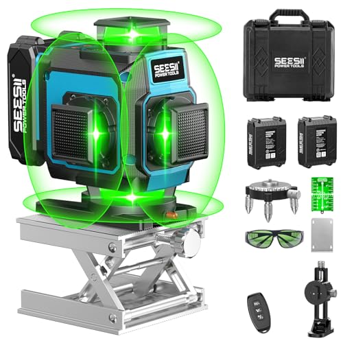 SEESII Green Laser Level, 4x360° 16-Line Full-Line Laser Level with Powerful LCD Display, Rotating Green Laser Line, Compact Design, Auto-Correction,